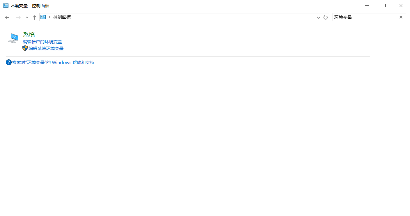 之后,打开设置面板,搜索“环境变量”,在“系统”下找到带着盾牌符号的“编辑系统环境变量”。