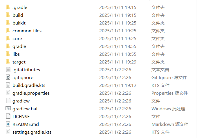 以 craftengine 的源代码为例,这就是一个典型的利用了 Gradle 进行构建的插件。若需要构建这个插件,你可以使用命令 gradle build,或上述的 gradlew.bat build 构建插件。
