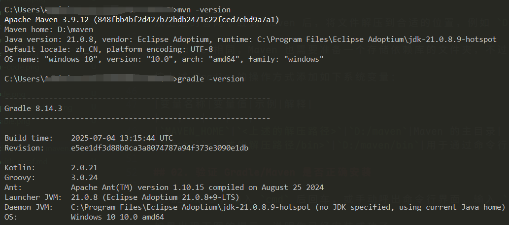 不同于一般的软件,Gradle/Maven 需要手动下载二进制文件,并通过系统环境对文件进行关联。
