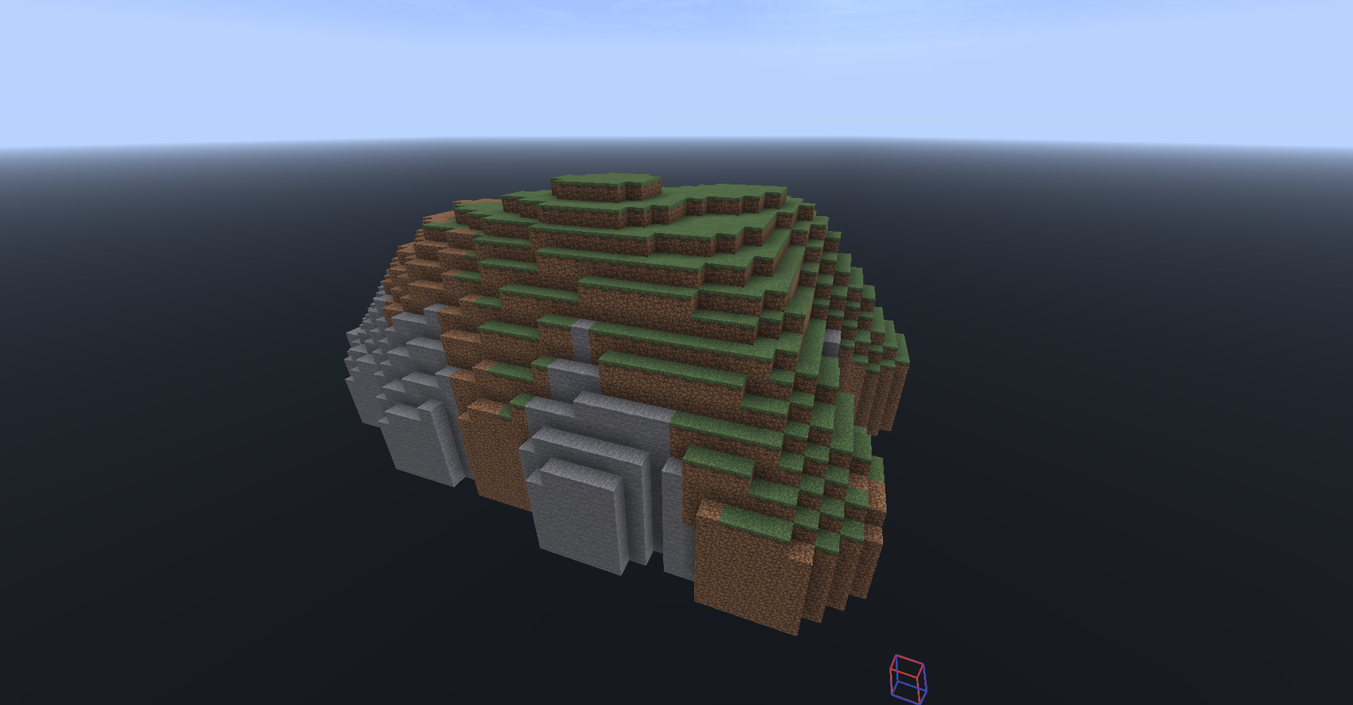 地形平滑(//smooth [重复次数])是本次教程中非常重要的一个指令。它可以让你的地形趋于平滑,更加自然。虽然没有像专业的地形编辑用户那样有酷炫的地形,但是造出一片简单美观的山丘已经非常足够了。