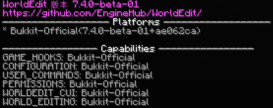 2. 输入命令 /worldedit version,如果你见到了如下消息,则说明插件安装成功。