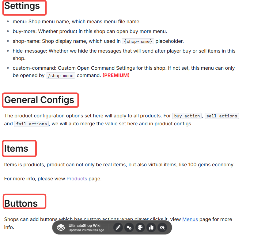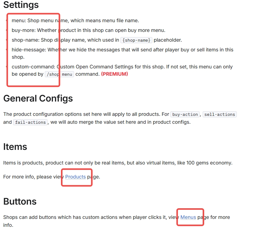 它们各自存在于配置的最顶部。这是商店配置,因此你可以在“商店”页面找到更完整的配置解释。里面的标题会标出所有可以填入这里的配置项。