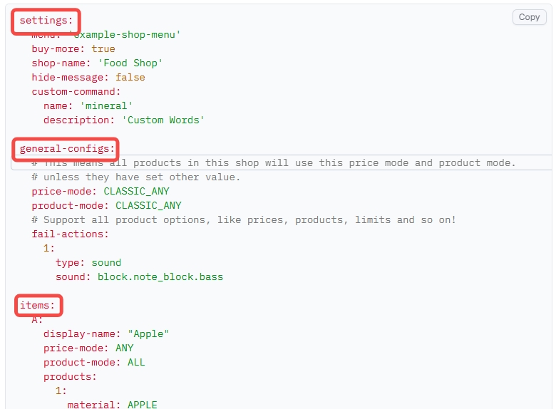 📊 理解 YAML/本维基在本插件中,配置均使用 YAML 格式。理解 YAML 语法是自定义商店配置的基础。让我们利用插件的真实示例讲解语法吧。