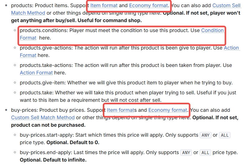 message: 'eco give {player} {amount}' ## 有效。4️⃣ products 下的四级键: